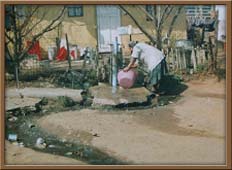 water connections, and people do their wasting at standpipes, or have to throw