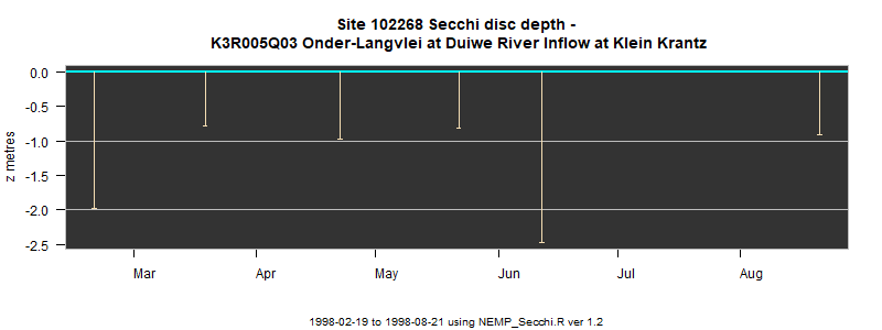 | DR | Site | Temperature | Oxygen | Secchi | Chlorophyll a, TP | Description |