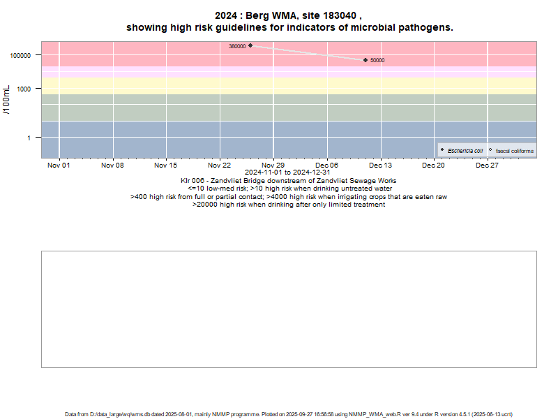 Risk based on E. coli if recorded, otherwise on faecal coliforms | ||||