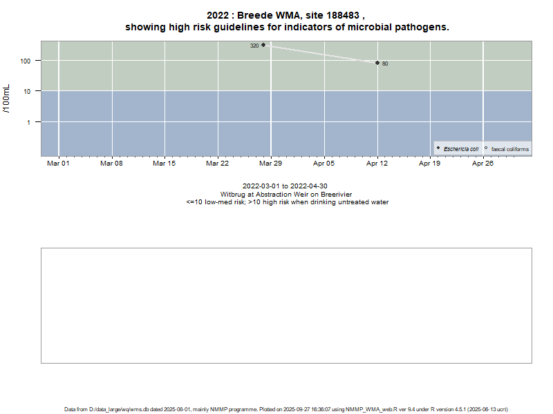 Risk based on E. coli if recorded, otherwise on faecal coliforms | ||||