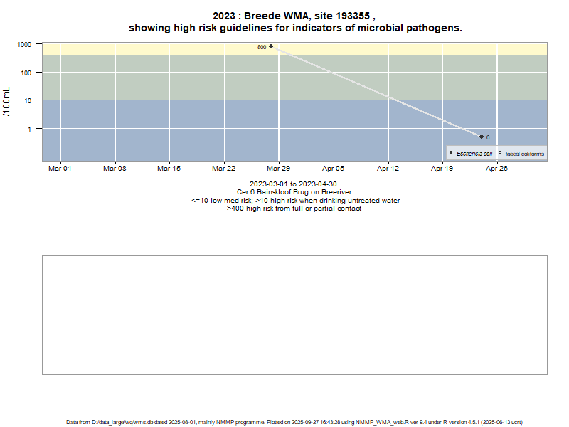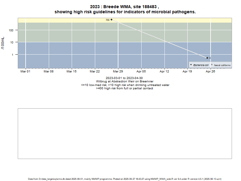Risk based on E. coli if recorded, otherwise on faecal coliforms | ||||