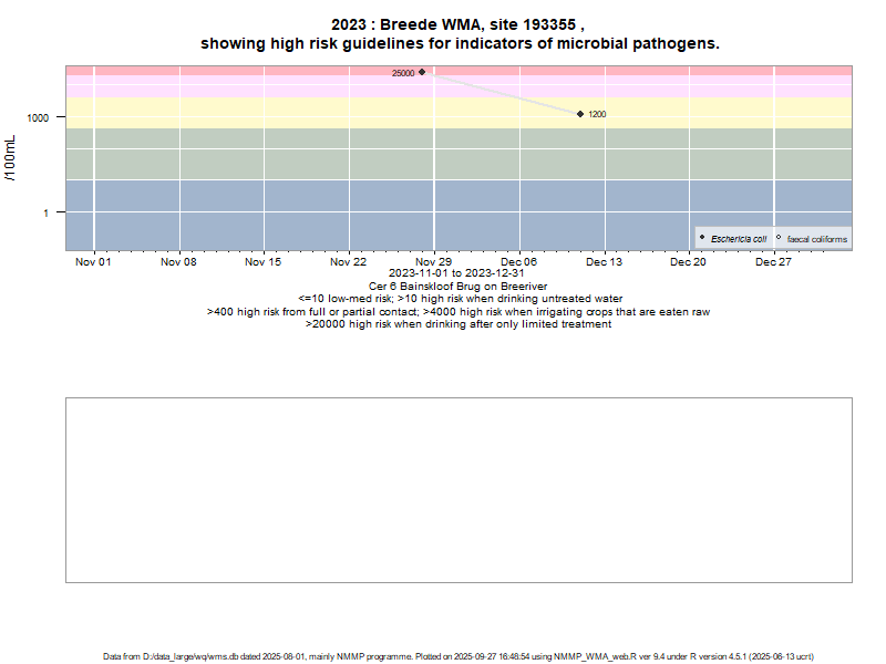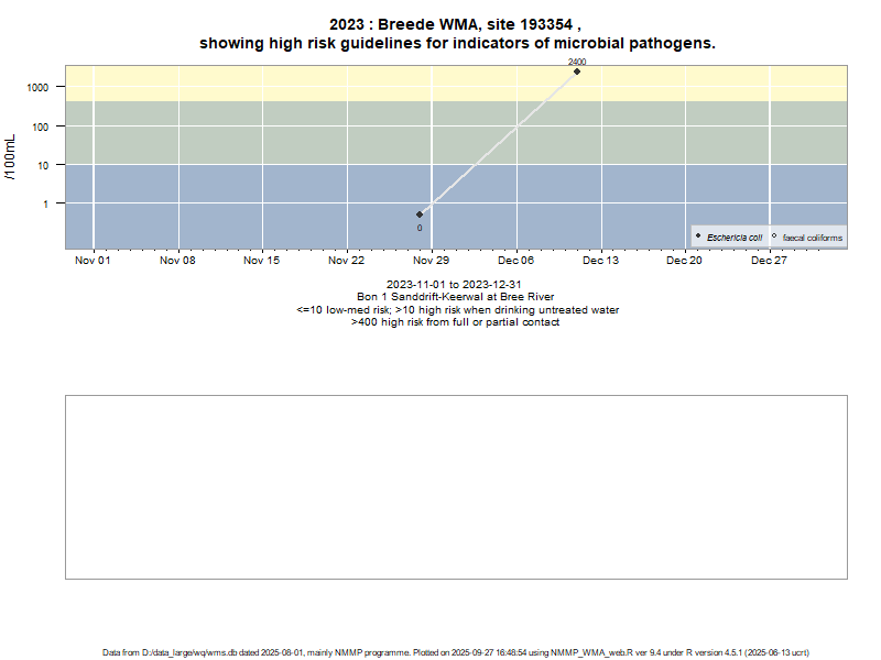 Risk based on E. coli if recorded, otherwise on faecal coliforms | ||||