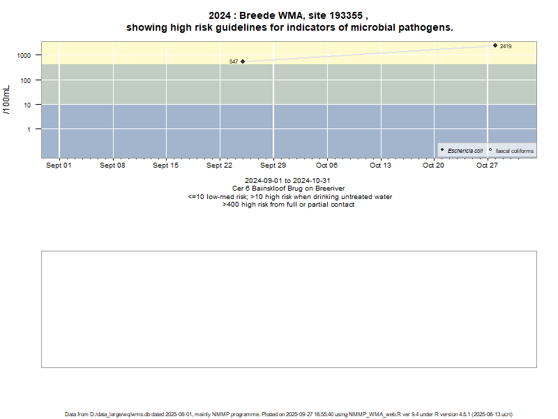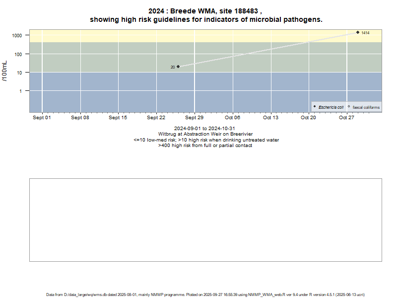 Risk based on E. coli if recorded, otherwise on faecal coliforms | ||||