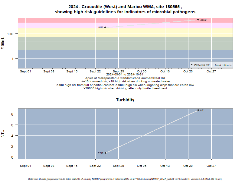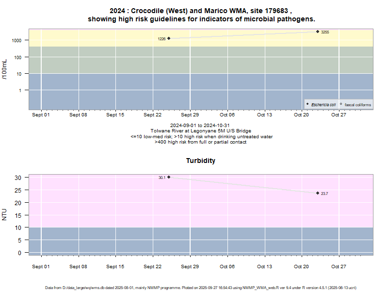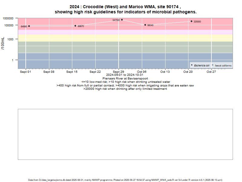 Risk based on E. coli if recorded, otherwise on faecal coliforms | ||||