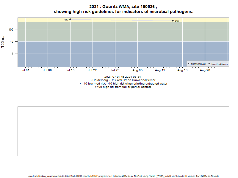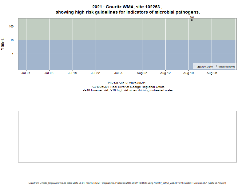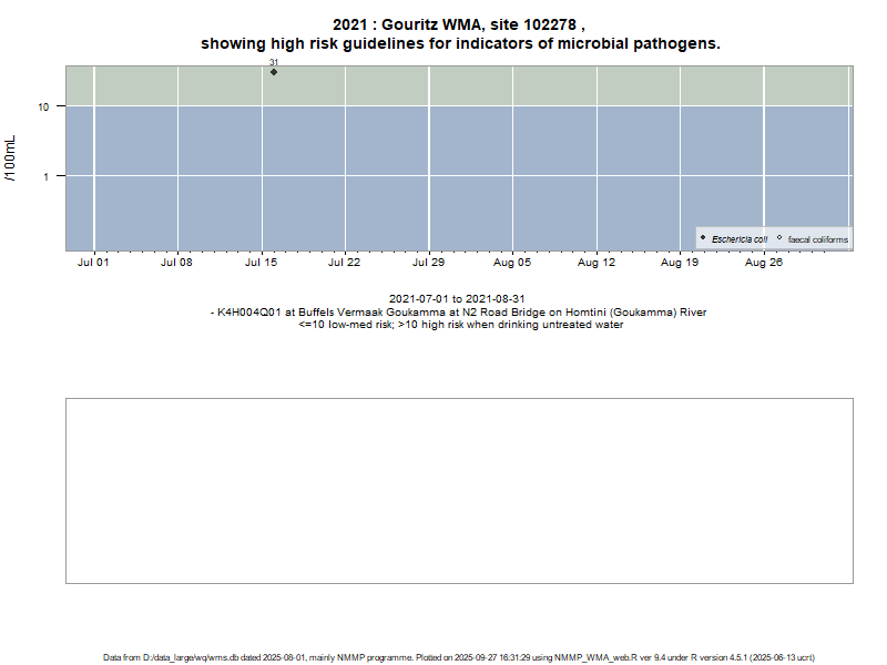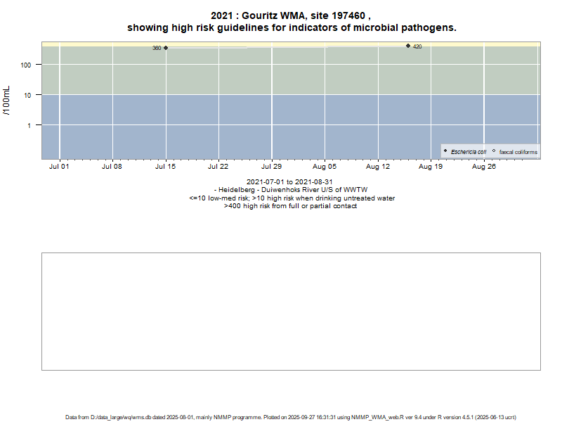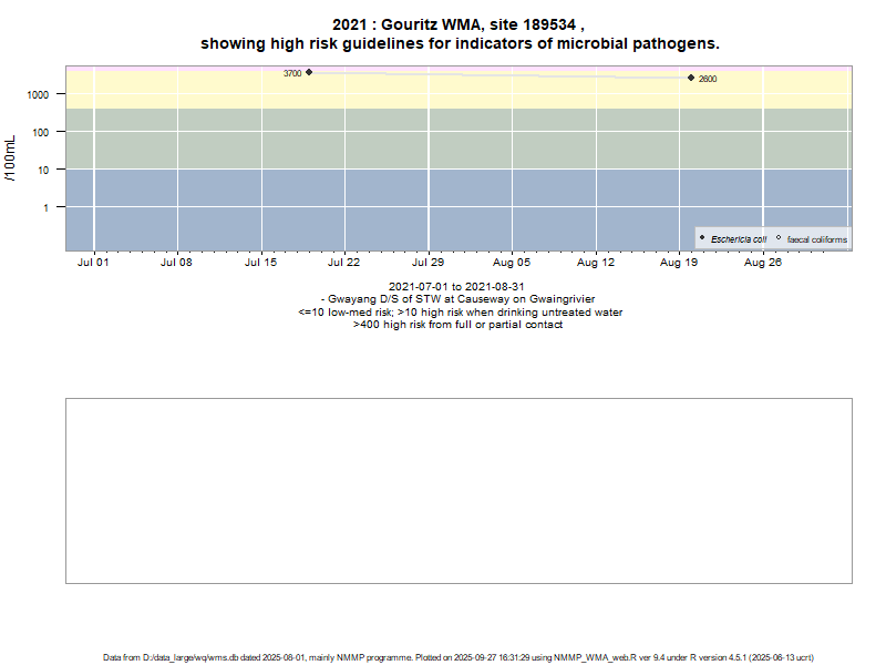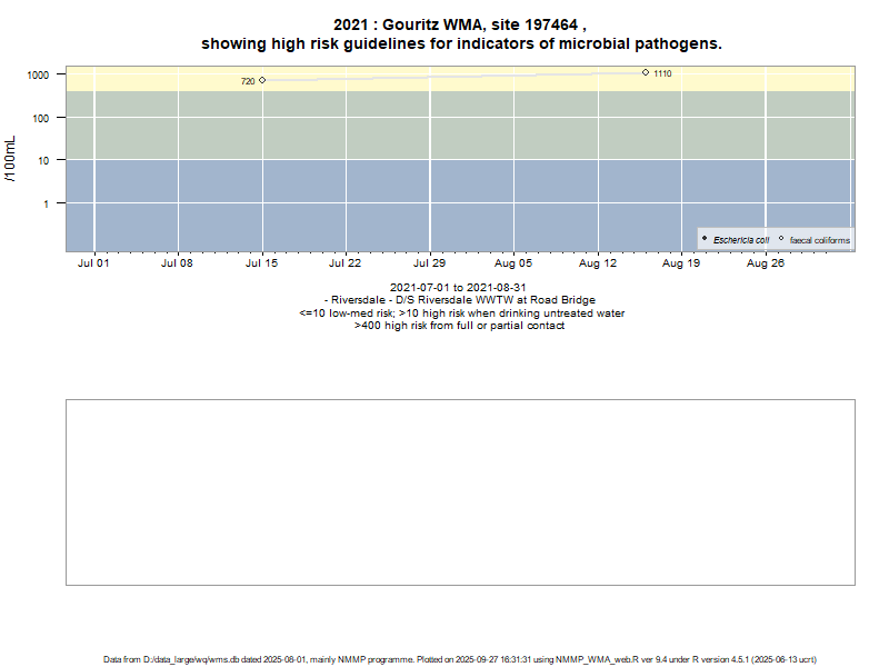 Risk based on E. coli if recorded, otherwise on faecal coliforms | ||||