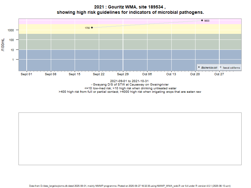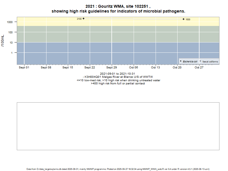Risk based on E. coli if recorded, otherwise on faecal coliforms | ||||