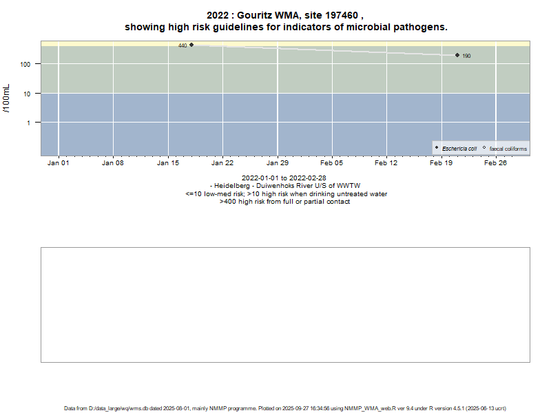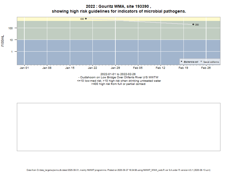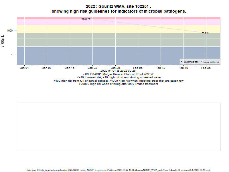 Risk based on E. coli if recorded, otherwise on faecal coliforms | ||||