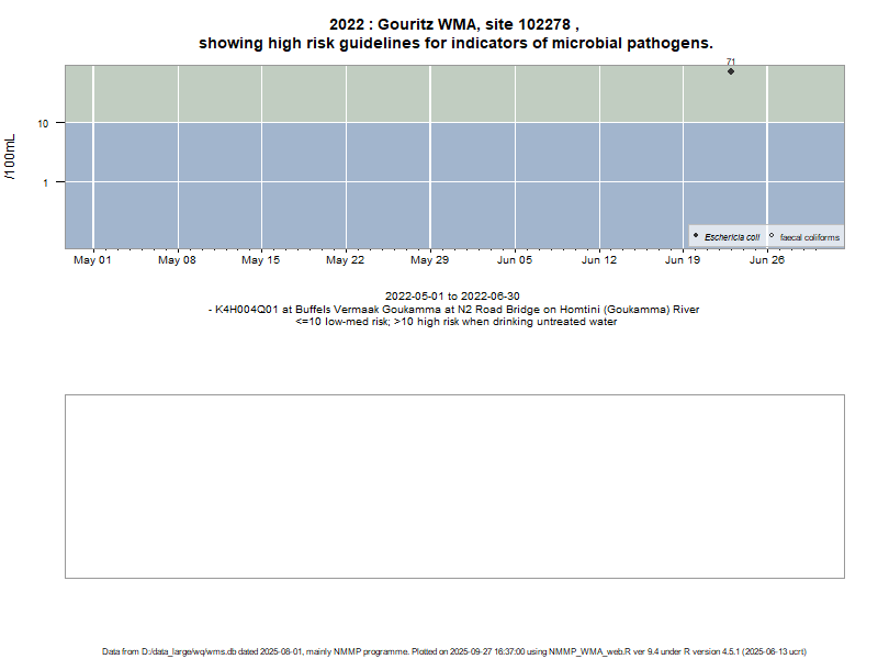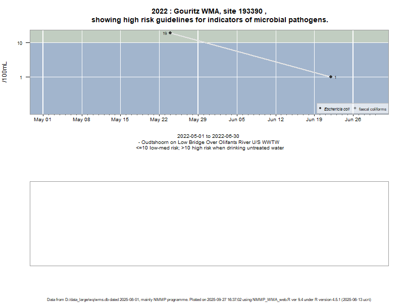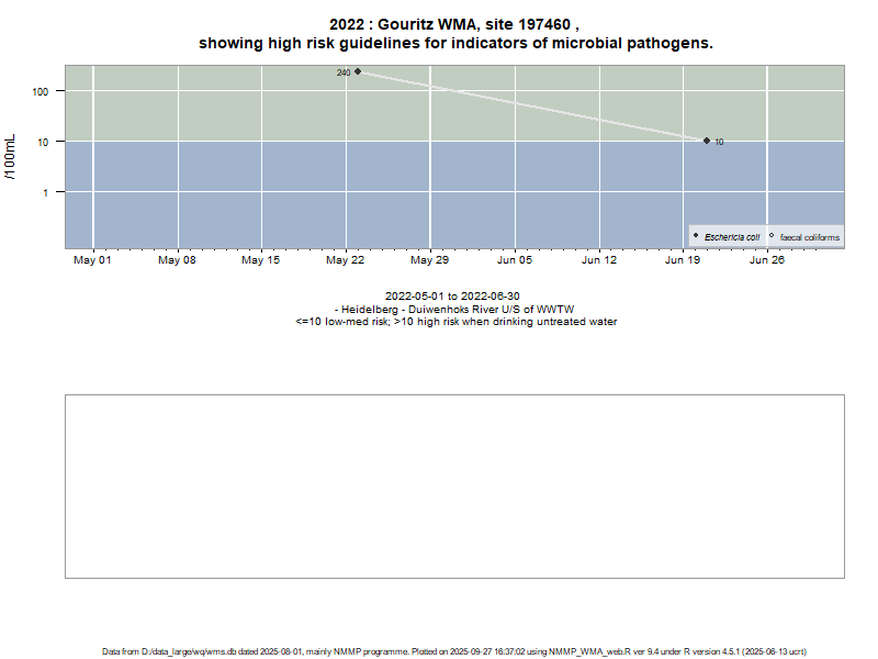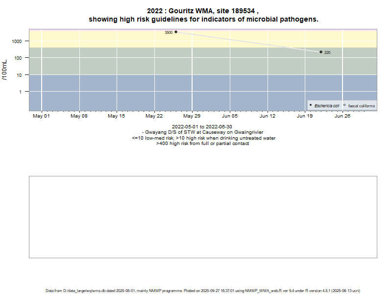 Risk based on E. coli if recorded, otherwise on faecal coliforms | ||||