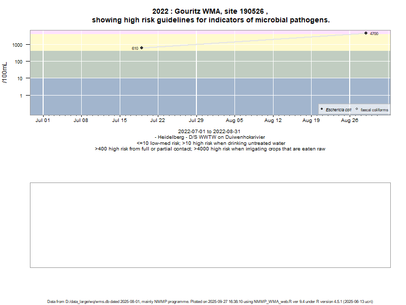 Risk based on E. coli if recorded, otherwise on faecal coliforms | ||||