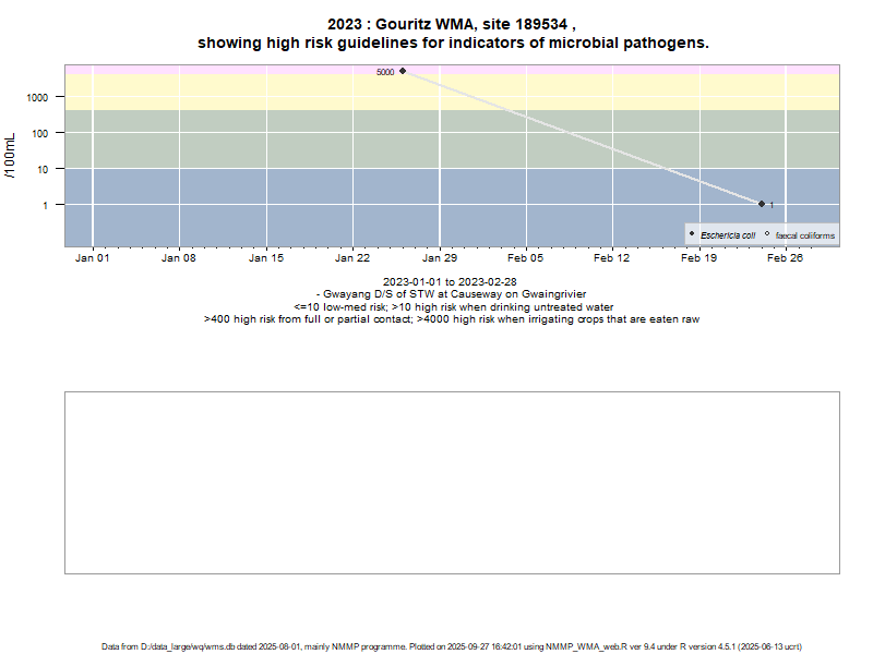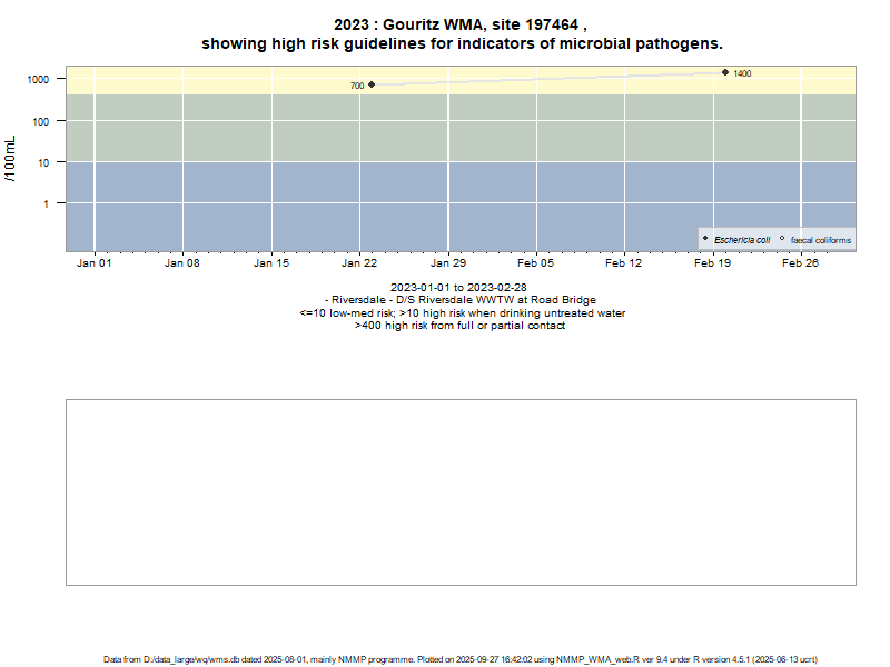 Risk based on E. coli if recorded, otherwise on faecal coliforms | ||||