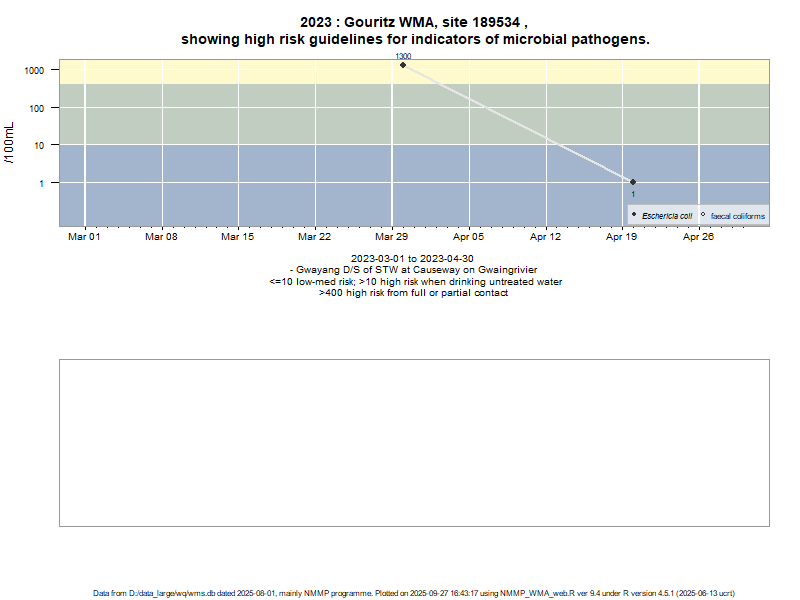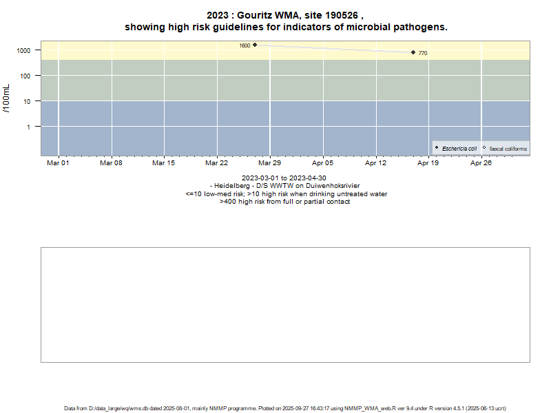 Risk based on E. coli if recorded, otherwise on faecal coliforms | ||||