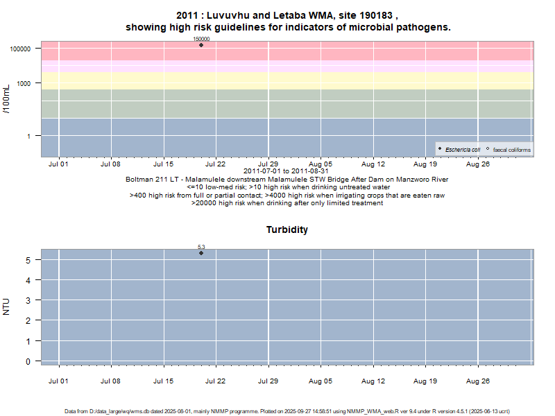 Risk based on E. coli if recorded, otherwise on faecal coliforms | ||||