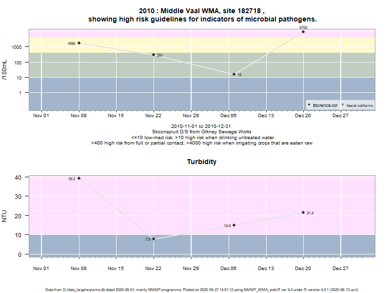 Risk based on E. coli if recorded, otherwise on faecal coliforms | ||||