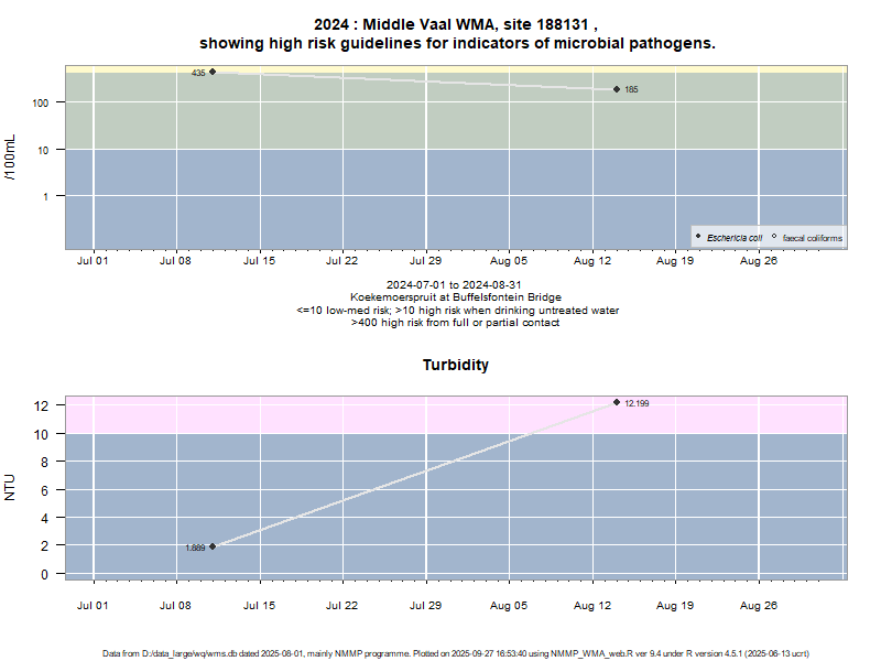 Risk based on E. coli if recorded, otherwise on faecal coliforms | ||||
