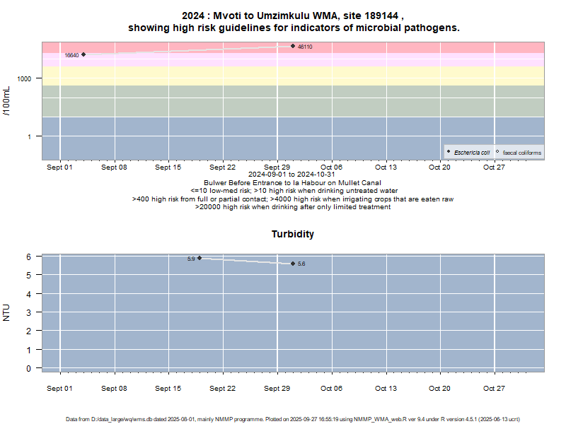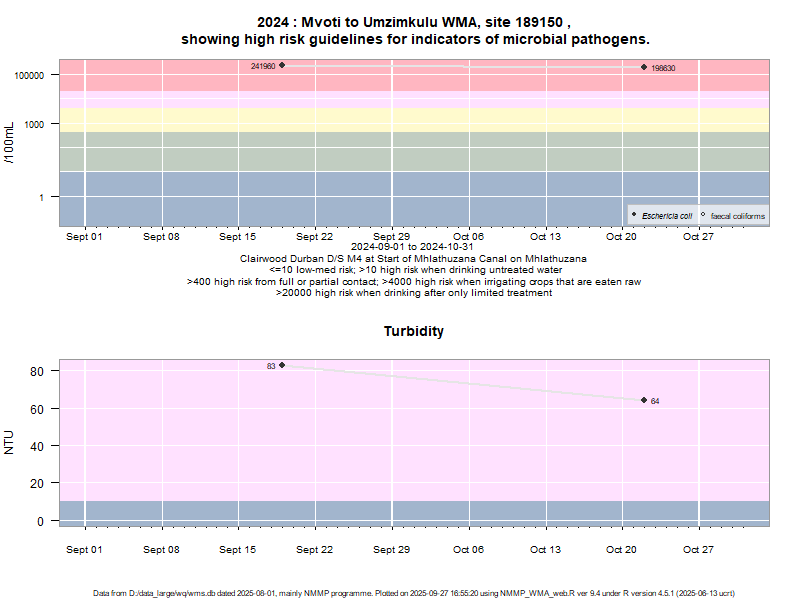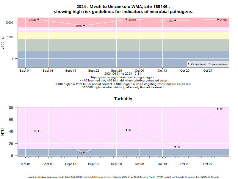 Risk based on E. coli if recorded, otherwise on faecal coliforms | ||||
