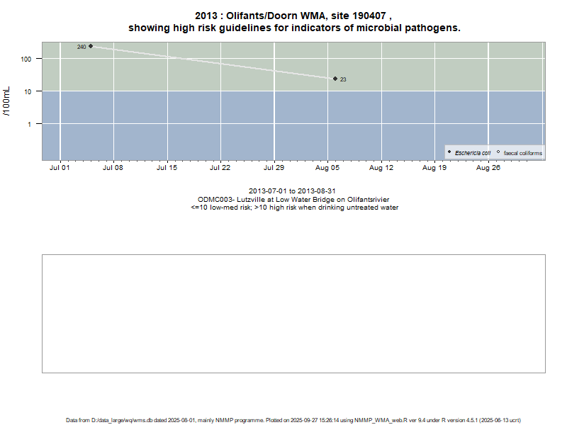Risk based on E. coli if recorded, otherwise on faecal coliforms | ||||