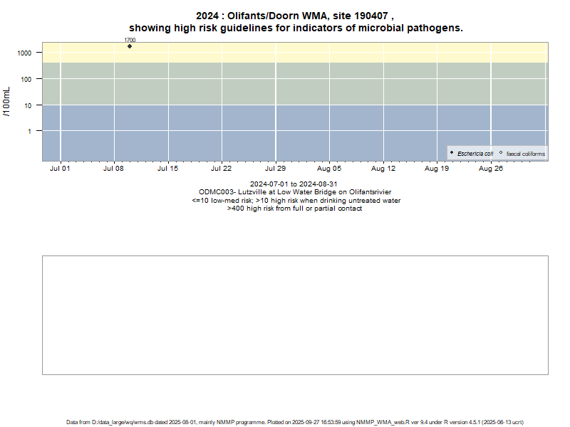 Risk based on E. coli if recorded, otherwise on faecal coliforms | ||||