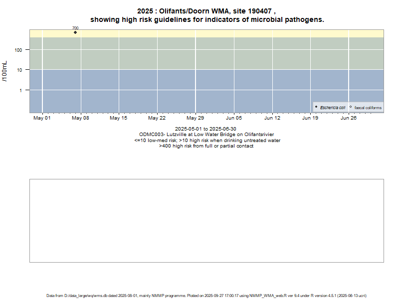 Risk based on E. coli if recorded, otherwise on faecal coliforms | ||||