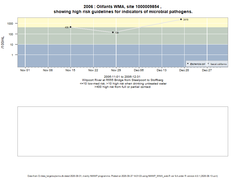 Risk based on E. coli if recorded, otherwise on faecal coliforms | ||||