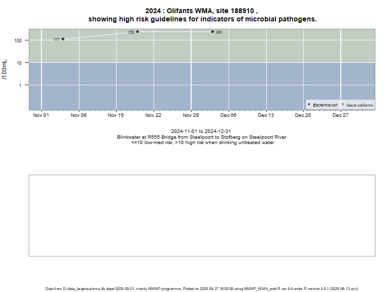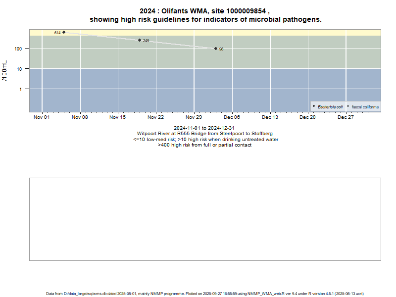Risk based on E. coli if recorded, otherwise on faecal coliforms | ||||