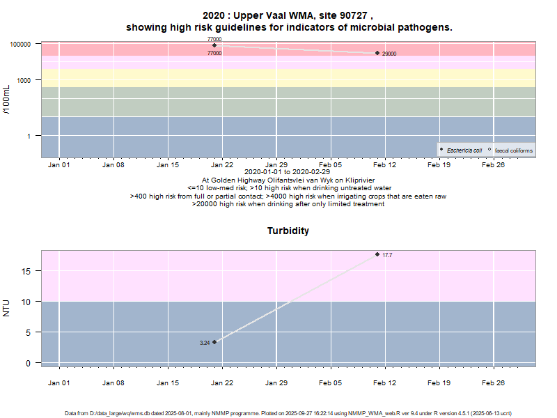 Risk based on E. coli if recorded, otherwise on faecal coliforms | ||||