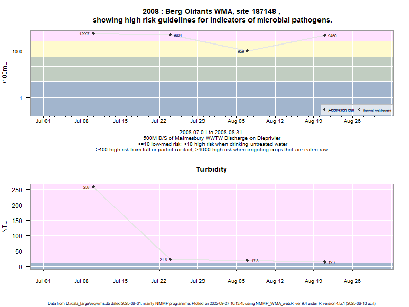 Risk based on E. coli if recorded, otherwise on faecal coliforms | ||||