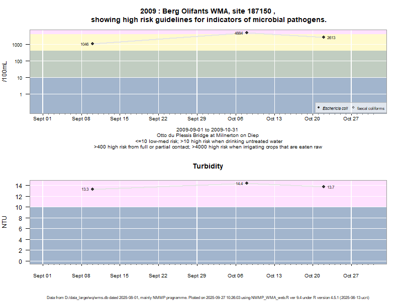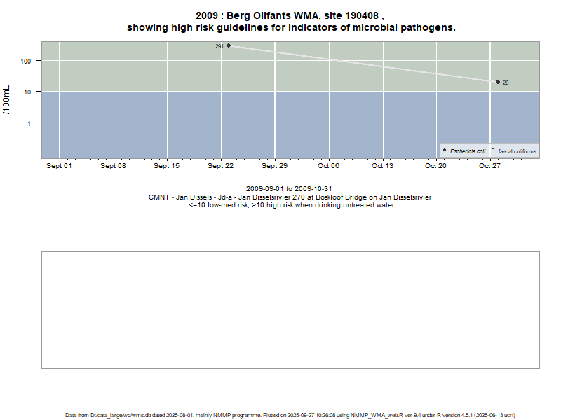Risk based on E. coli if recorded, otherwise on faecal coliforms | ||||