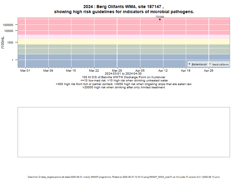 Risk based on E. coli if recorded, otherwise on faecal coliforms | ||||