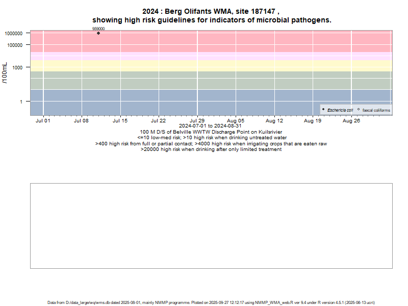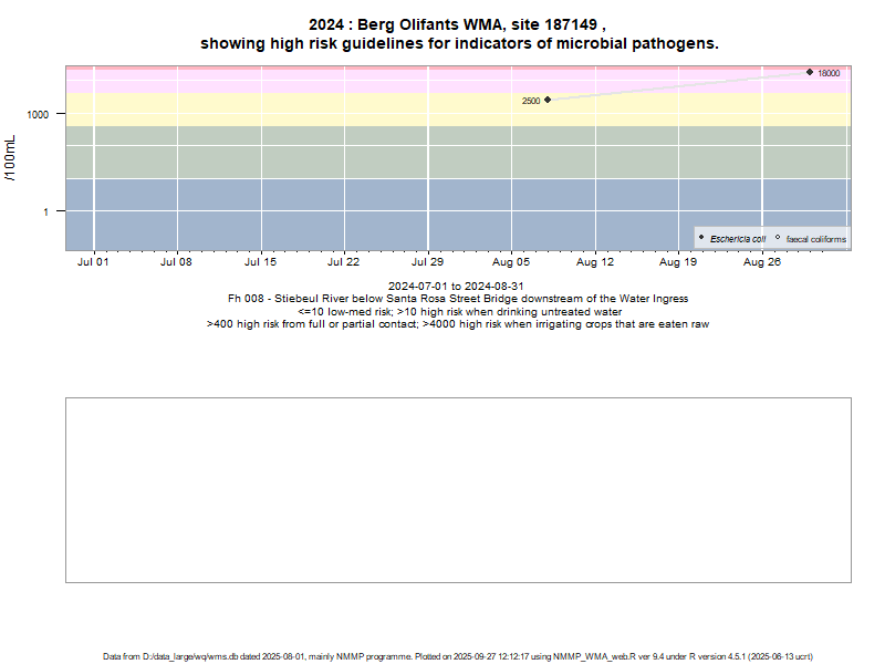 Risk based on E. coli if recorded, otherwise on faecal coliforms | ||||