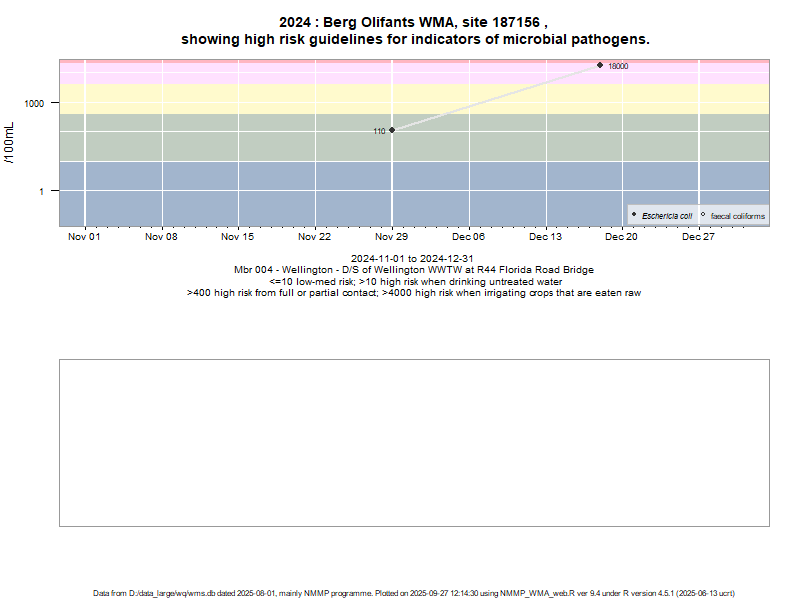 Risk based on E. coli if recorded, otherwise on faecal coliforms | ||||