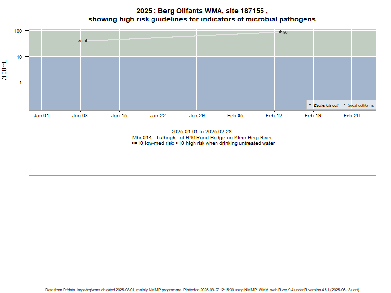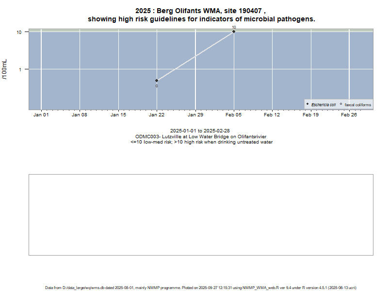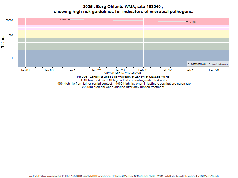 Risk based on E. coli if recorded, otherwise on faecal coliforms | ||||