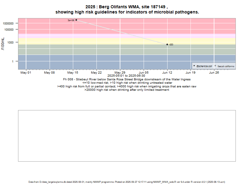 Risk based on E. coli if recorded, otherwise on faecal coliforms | ||||