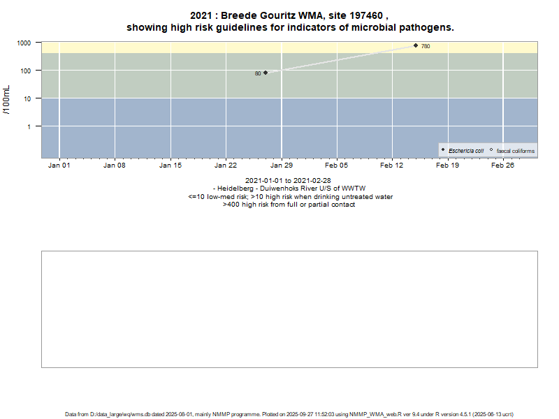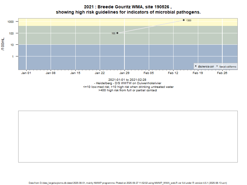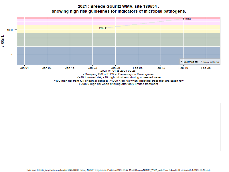 Risk based on E. coli if recorded, otherwise on faecal coliforms | ||||