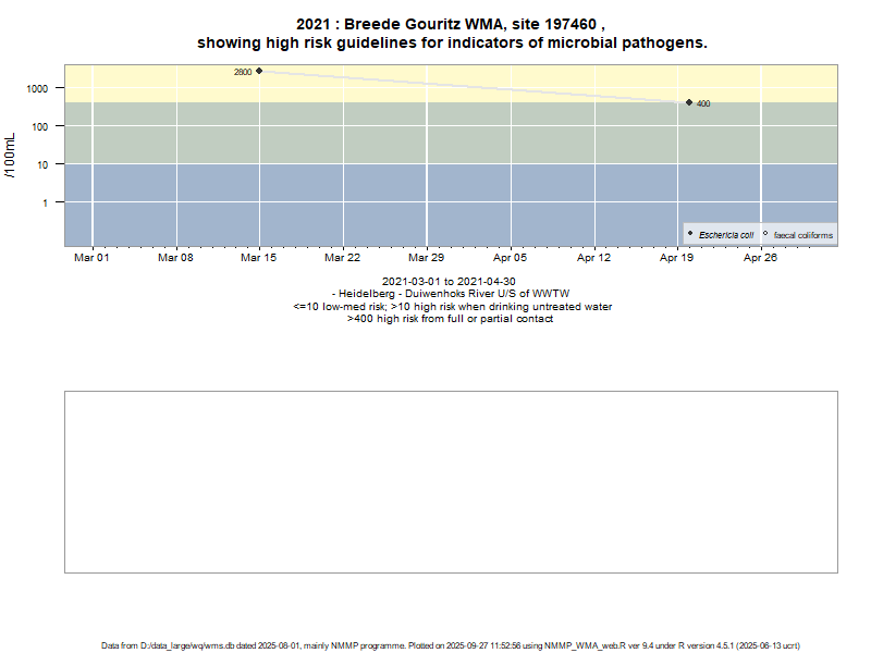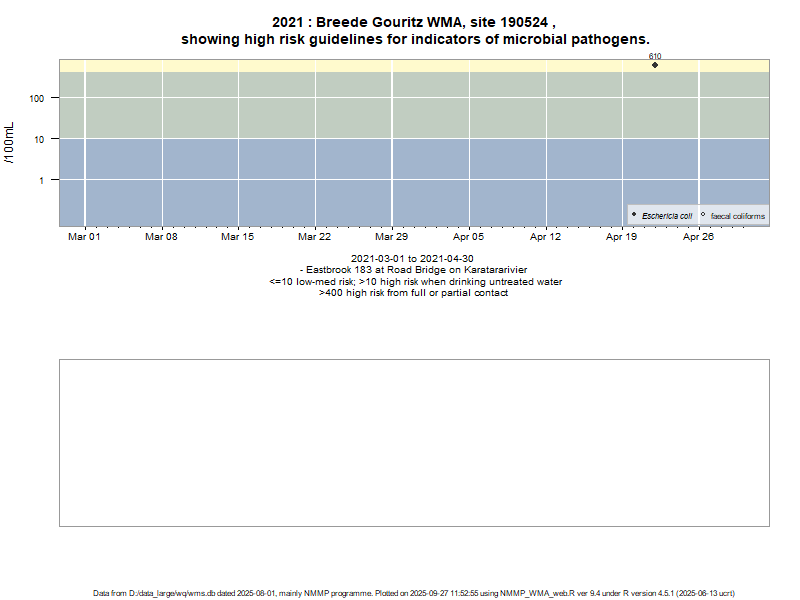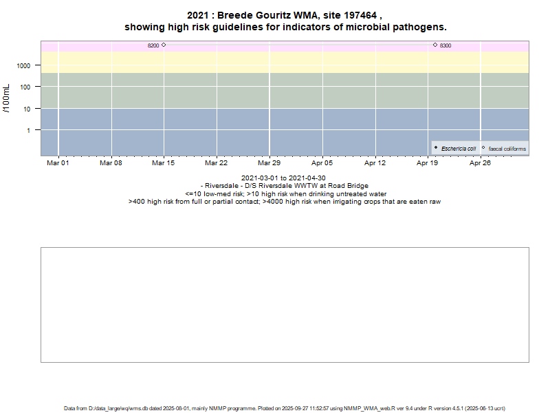 Risk based on E. coli if recorded, otherwise on faecal coliforms | ||||