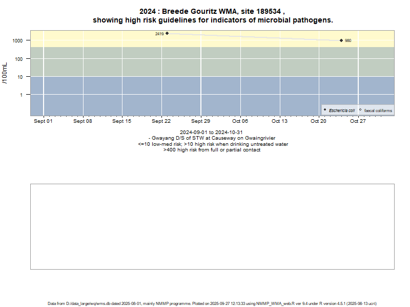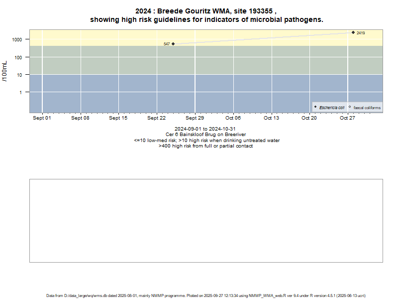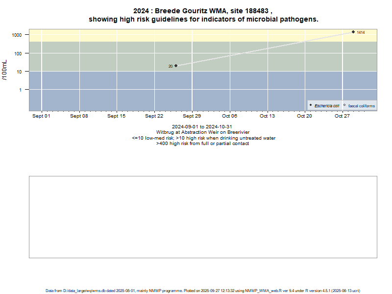 Risk based on E. coli if recorded, otherwise on faecal coliforms | ||||