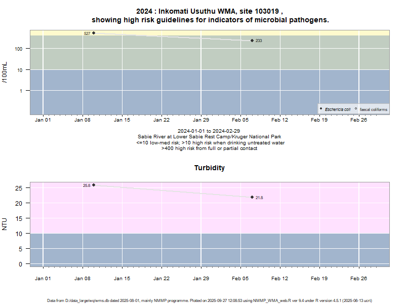 Risk based on E. coli if recorded, otherwise on faecal coliforms | ||||