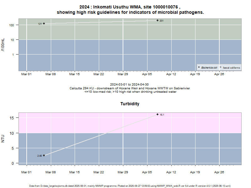 Calcutta 294 KU - downstream of Hoxane Weir and Hoxane WWTW on Sabierivier |