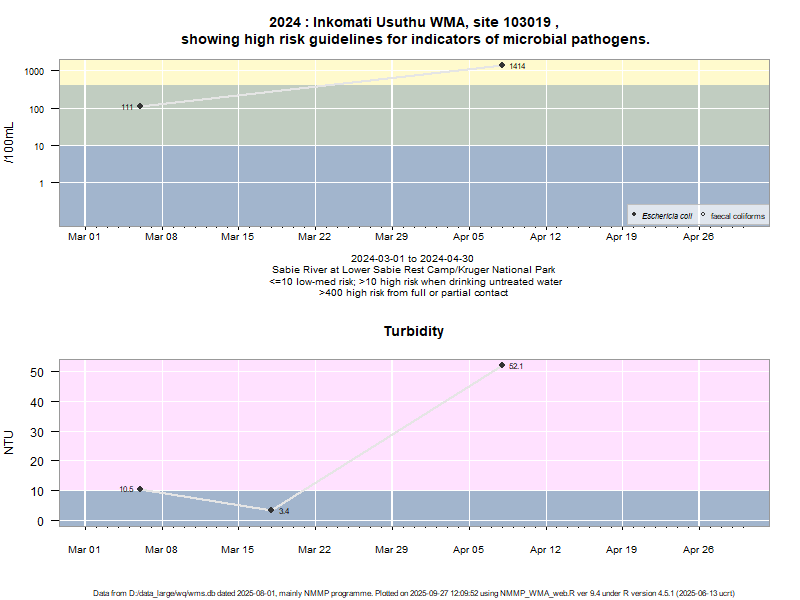Risk based on E. coli if recorded, otherwise on faecal coliforms | ||||