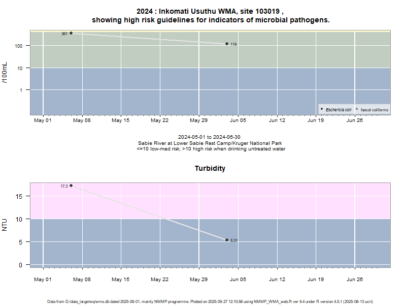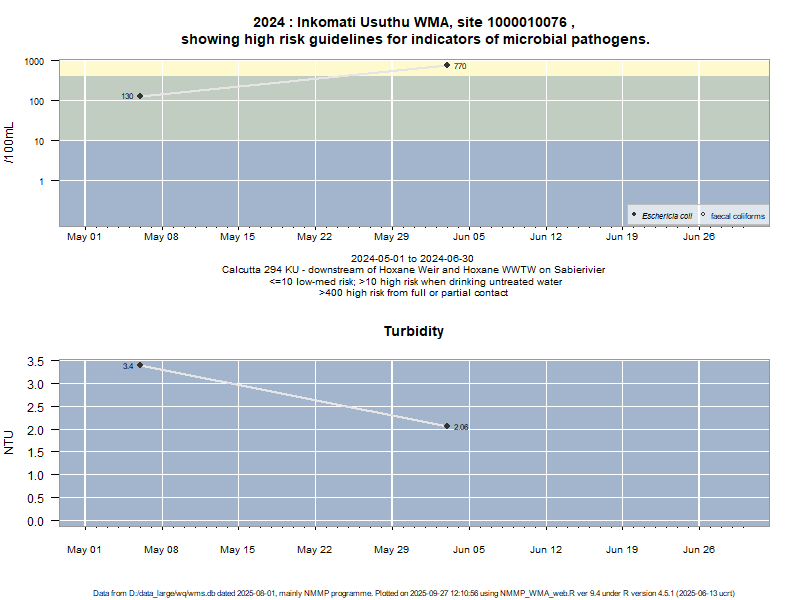 Risk based on E. coli if recorded, otherwise on faecal coliforms | ||||