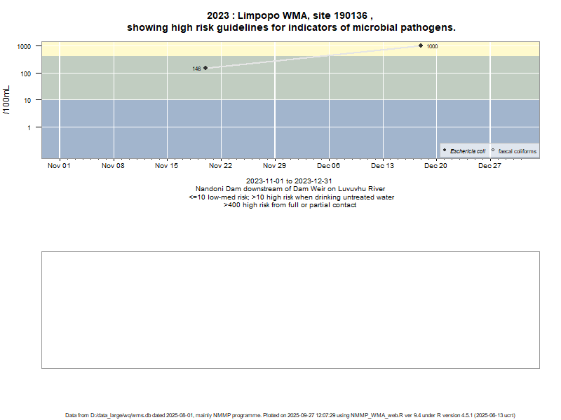 Risk based on E. coli if recorded, otherwise on faecal coliforms | ||||