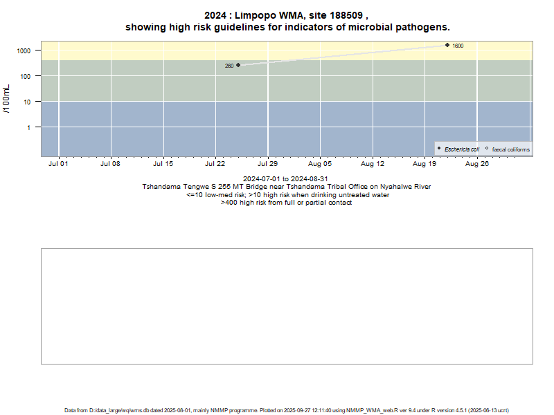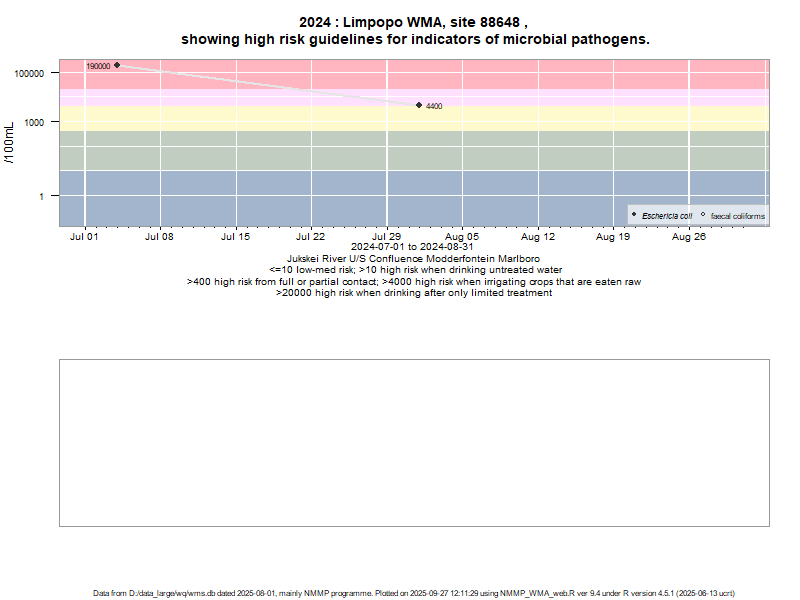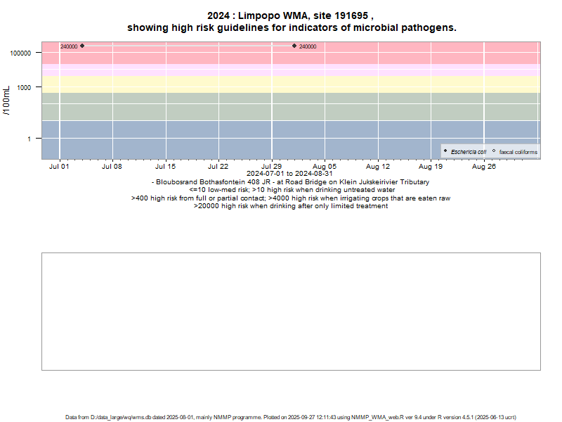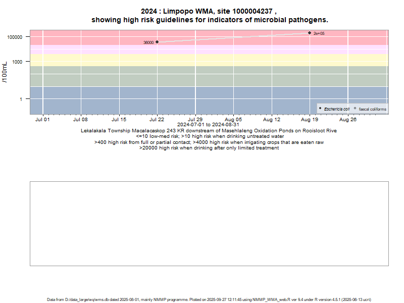 Risk based on E. coli if recorded, otherwise on faecal coliforms | ||||