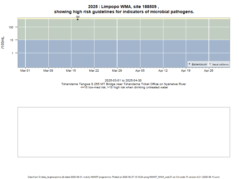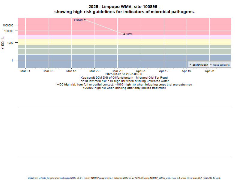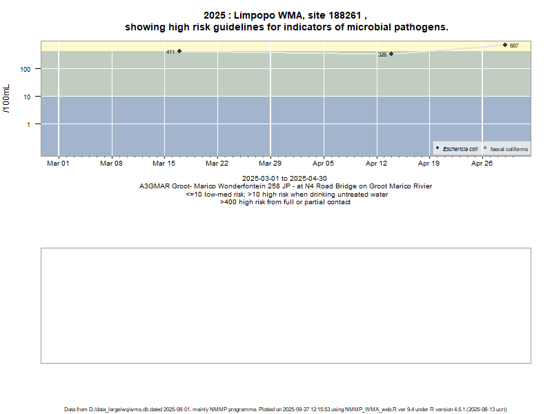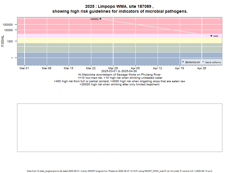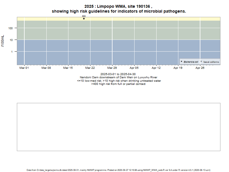 Risk based on E. coli if recorded, otherwise on faecal coliforms | ||||