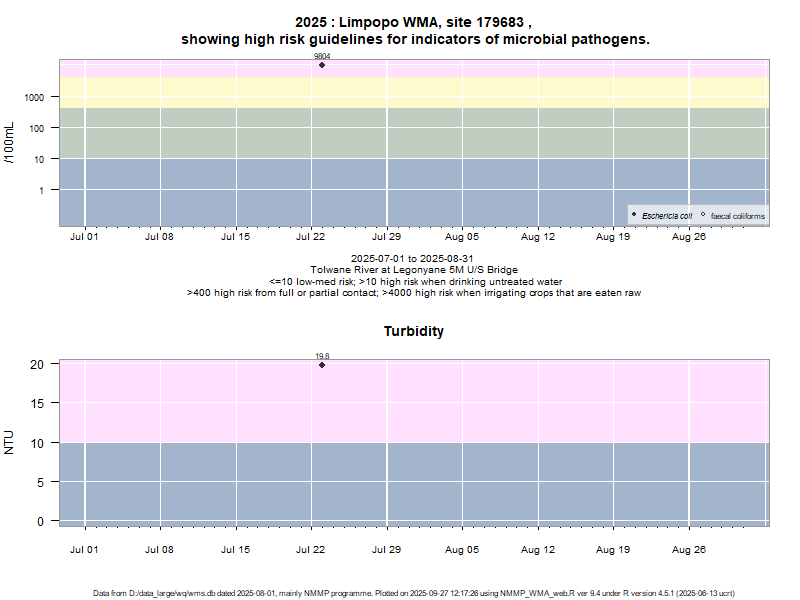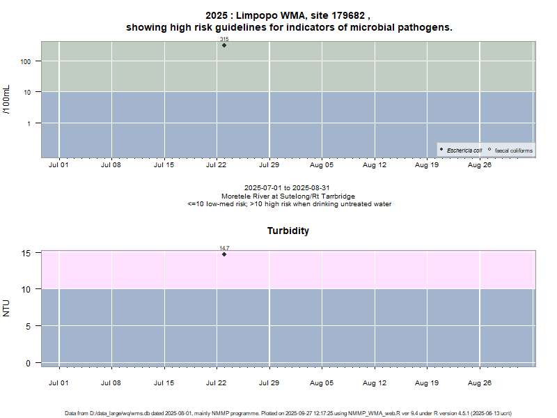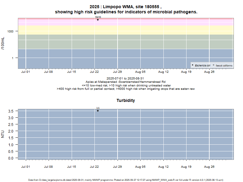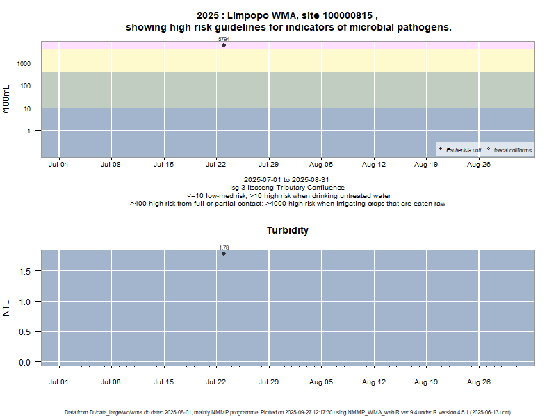 Risk based on E. coli if recorded, otherwise on faecal coliforms | ||||