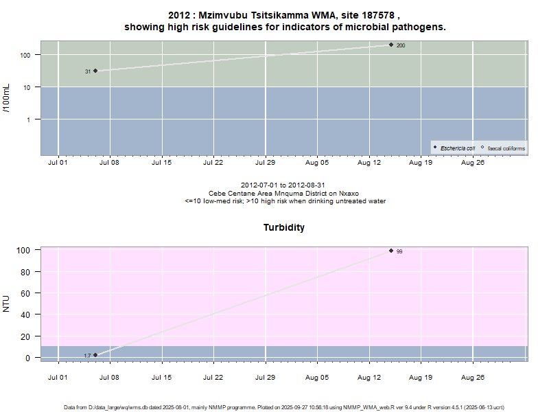 Risk based on E. coli if recorded, otherwise on faecal coliforms | ||||