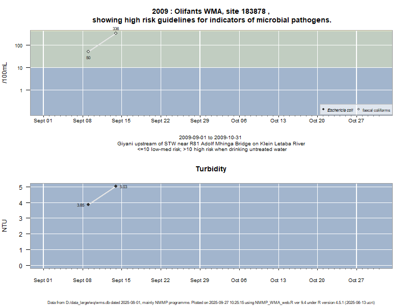 Risk based on E. coli if recorded, otherwise on faecal coliforms | ||||
