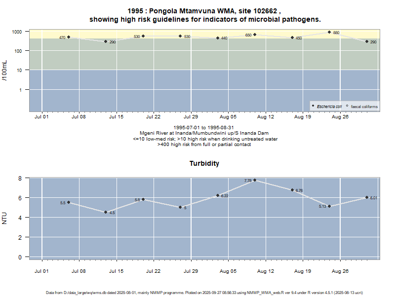 Risk based on E. coli if recorded, otherwise on faecal coliforms | ||||
