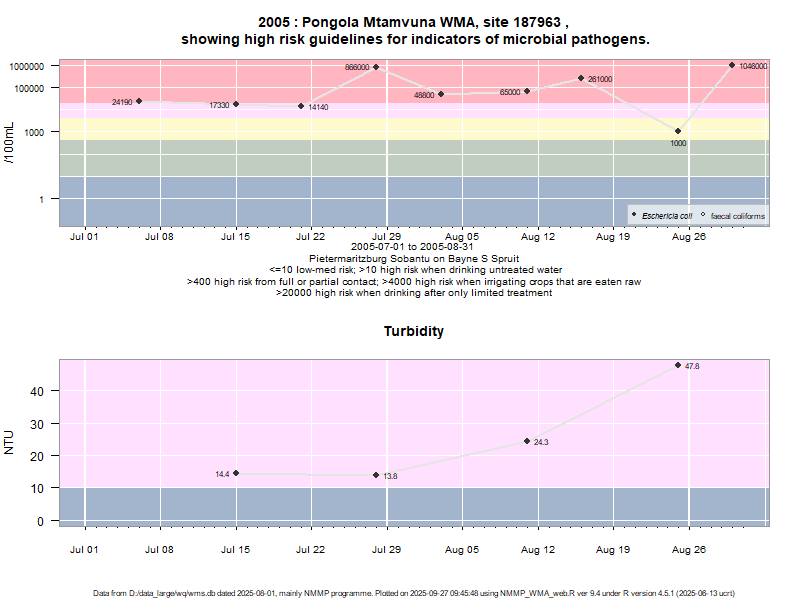 Risk based on E. coli if recorded, otherwise on faecal coliforms | ||||