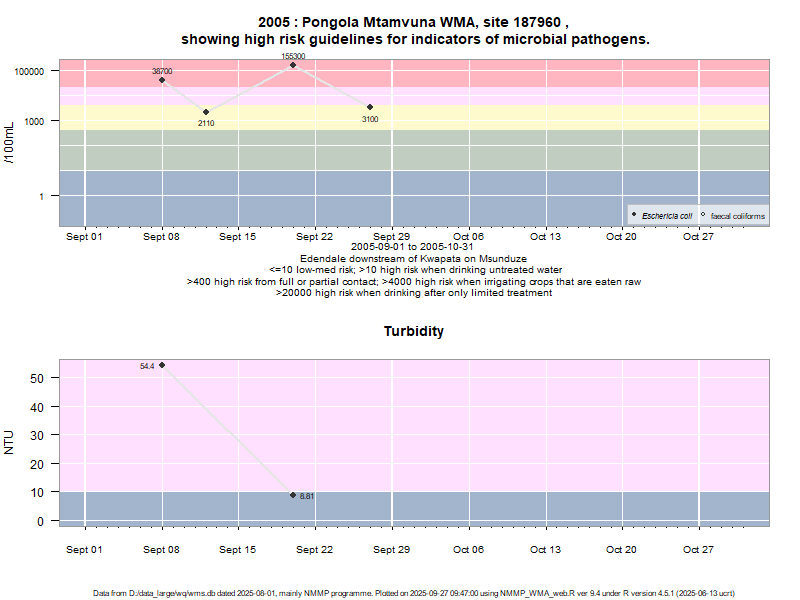 Risk based on E. coli if recorded, otherwise on faecal coliforms | ||||