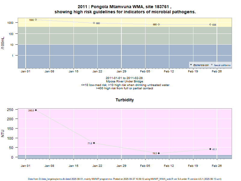 Risk based on E. coli if recorded, otherwise on faecal coliforms | ||||