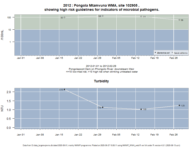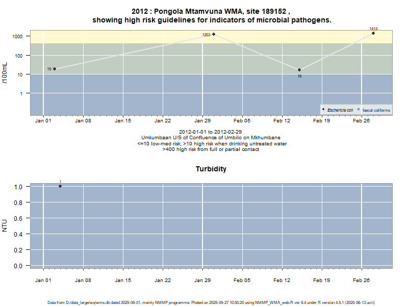 Risk based on E. coli if recorded, otherwise on faecal coliforms | ||||
